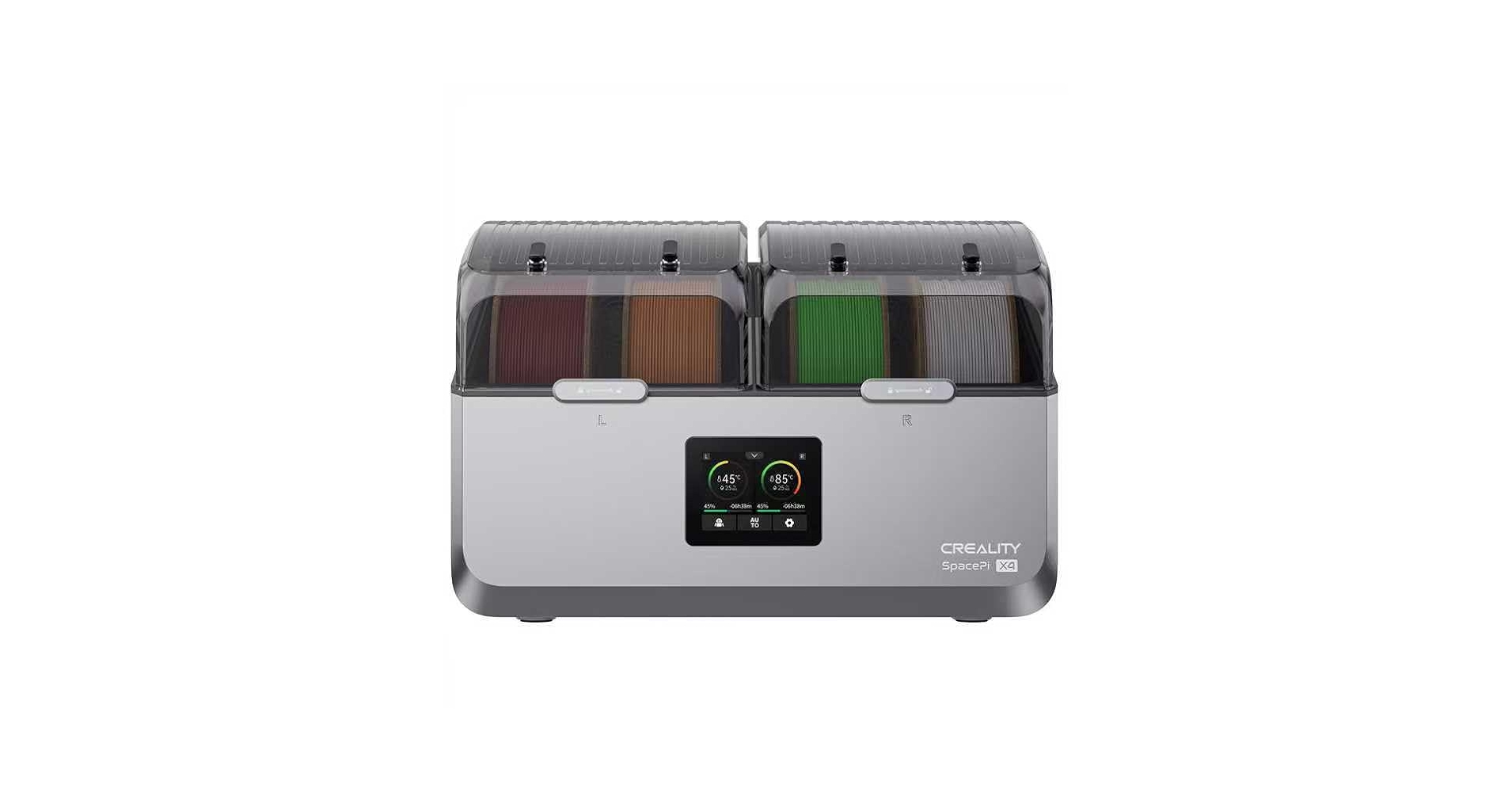 يعمل Space Pi X4 على تجفيف حتى أربع بكرات خيوط في آنٍ واحد بفضل نظام التسخين المزدوج وتقنية إزالة الرطوبة الذكية، مما يمنع الفقاعات، التشققات، والعيوب الناتجة عن الرطوبة.